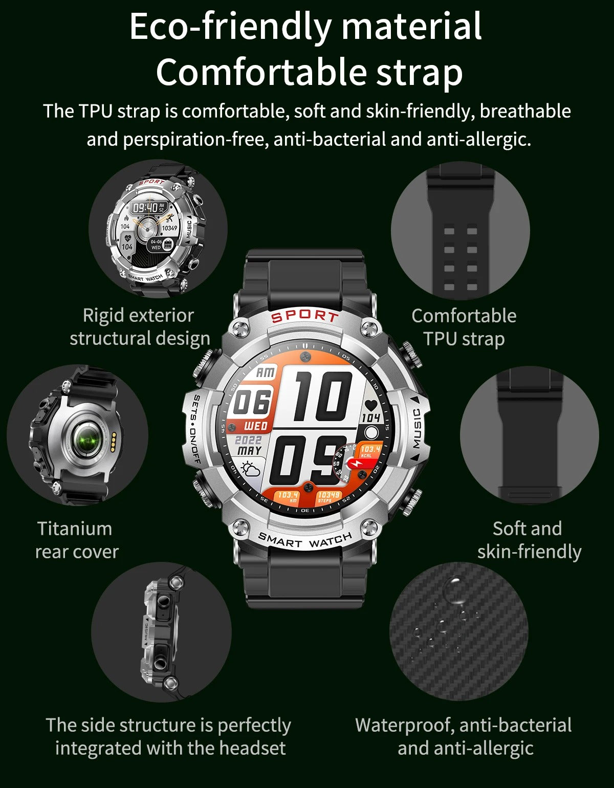 Integrated Wireless Earbuds (Watch Buds) – Built directly into the watch strap for easy access to music and calls anytime, anywhere.